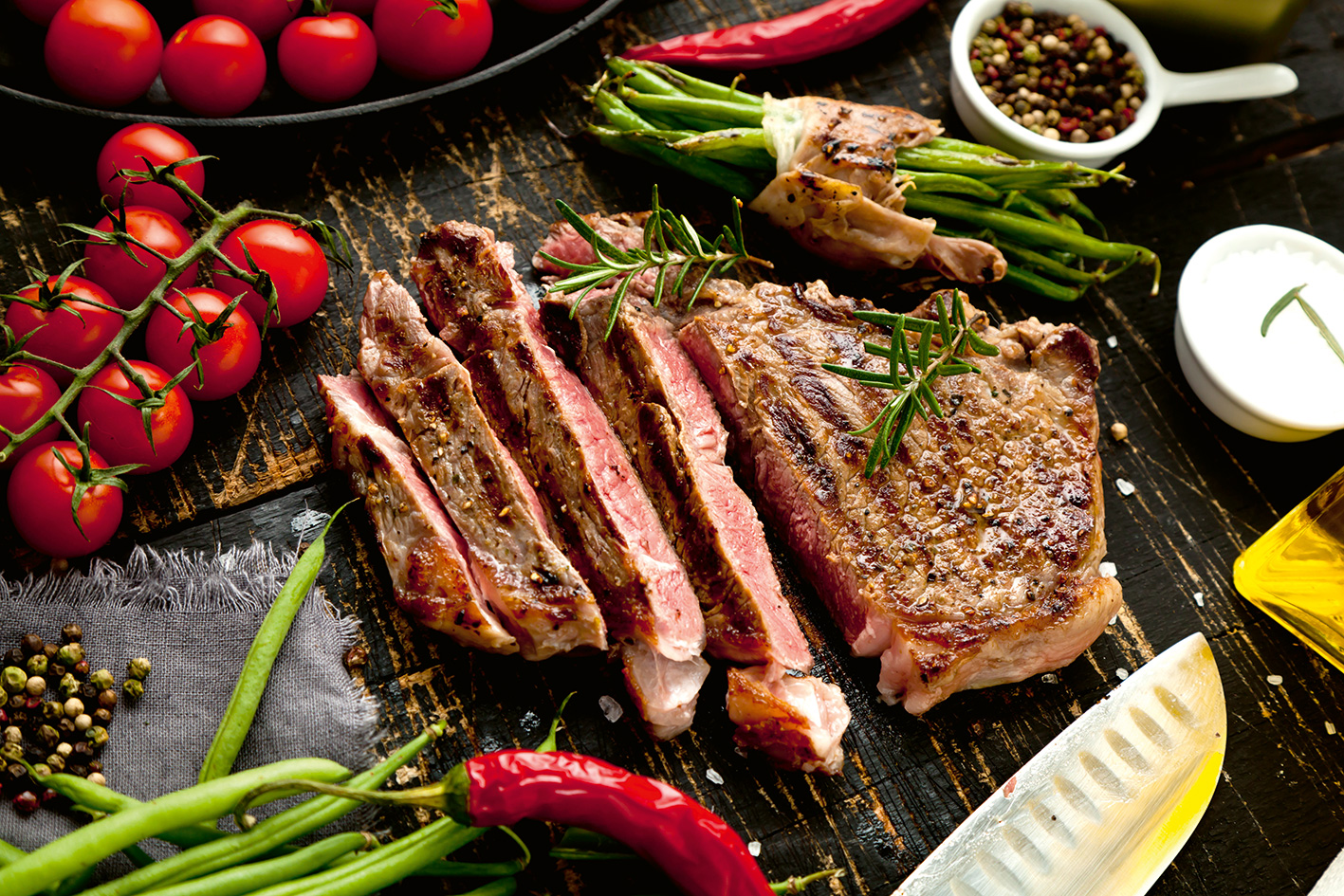 • Fett macht saftig: Marmoriertes Fleisch (z. B. Ribeye, Nackensteak) bleibt saftiger als sehr mageres.